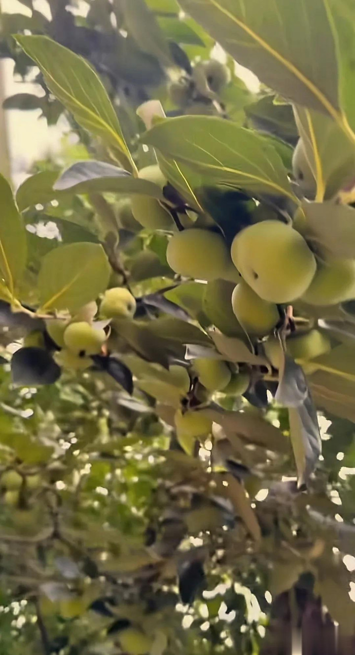院子的一角,还中了柿子树,柿子树的枝条上挂满了果实,把枝条都给压弯了。