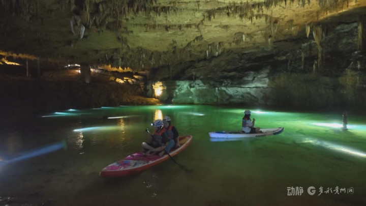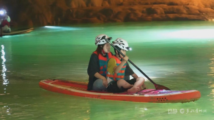 这个暑假,不少家长带着孩子们来到黔西南布依族苗族自治州安龙县德卧镇的将军洞了解地质知识,体验洞穴桨板,在溶洞中玩水乐享清凉。
