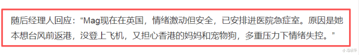 不管是情绪问题,还是其他原因,网友们对林欣彤还是十分担心的。而稍晚些时候,林欣彤的经纪人也是在网上发声报平安了。称林欣彤现在英国,情绪激动但十分安全,已经安排进医院急症室。而这次情绪激动的原因是,本打算台风前返港,但没有登上飞机,又担心在香港的妈妈和宠物狗,多重压力下情绪失控。