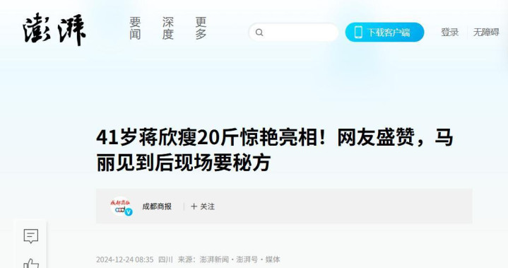 澎湃新闻(41岁蒋欣瘦20斤惊艳亮相!网友盛赞,马丽见到后现场要秘方 2024.12.24)