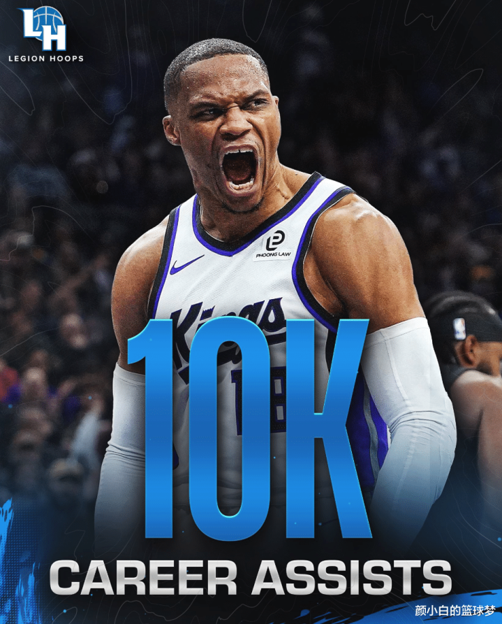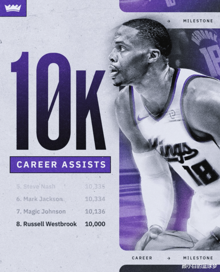 国王不敌森林狼,这场比赛拉塞尔-威斯布鲁克顶替了丹尼斯-施罗德的先发控卫席位,他完成了个人10000助攻的里程碑,虽然最终国王输球了,但这个夜晚威少绝对是整个NBA最吸睛、最闪耀的那个人。