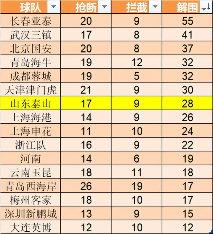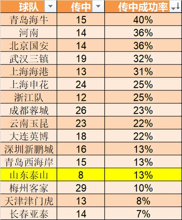 19.本轮山东泰山的长传成功率为43%,排名中超第11.