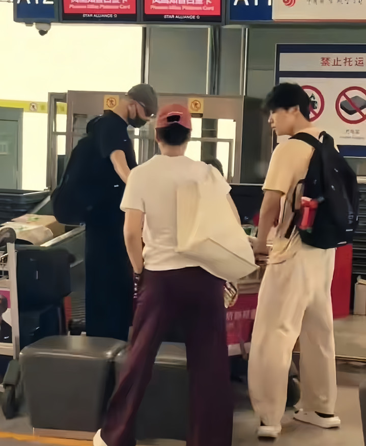 前两天,导演管虎和演员梁静,在机场送儿子出国读书时,被路人拍了下来。