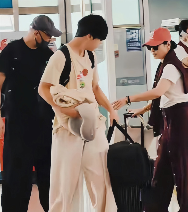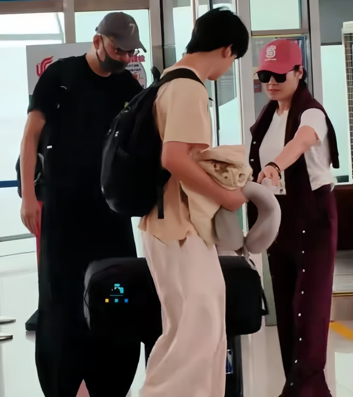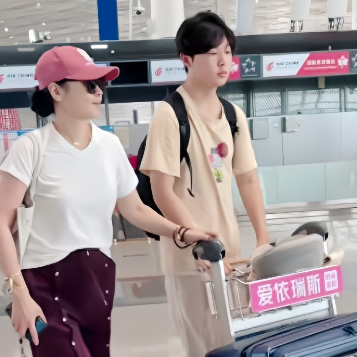 管虎忙着办理登机手续,梁静则始终陪在儿子身旁,轻声细语、一遍遍地嘱咐着什么。