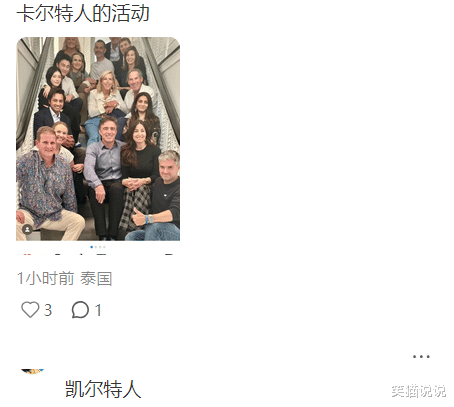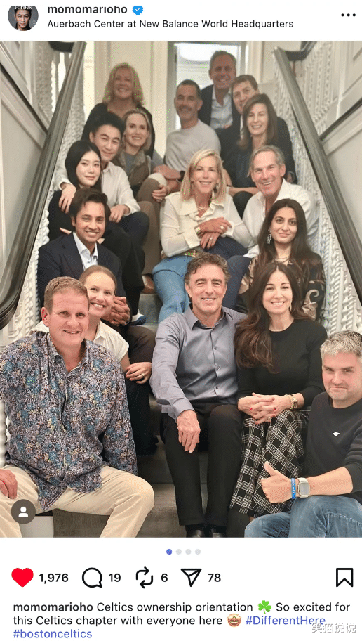 何猷君还晒出了他与合作伙伴们的集体合照,在这一次合照中,奚梦瑶也有出镜。在合照中可以看到他们都坐在楼梯间,其中有不少人都搂着自己的妻子甜蜜合照,何猷君也不例外。照片中的何猷君坐在奚梦瑶的后面,手搭在奚梦瑶的肩膀上,两人的动作十分甜蜜,看起来十分恩爱幸福。网友们也从这一张合照中分析得出,他们俩这一次参加的应该是凯尔特人的活动。