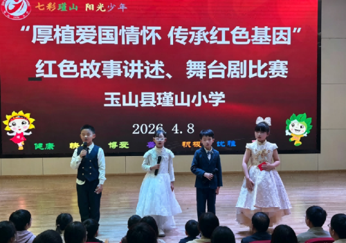 4月8日下午,玉山县瑾山小学新报告厅内掌声阵阵、温情涌动,红色主题舞台剧比赛在这