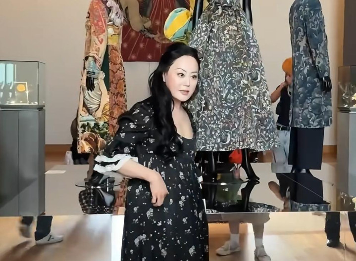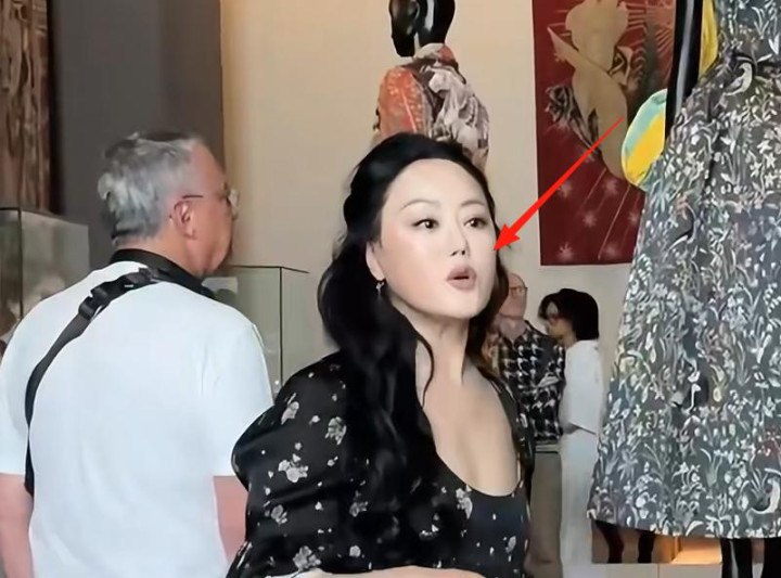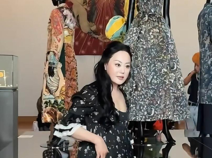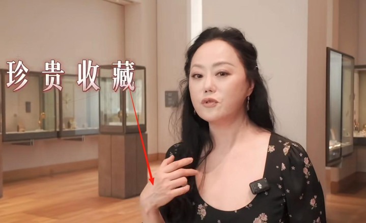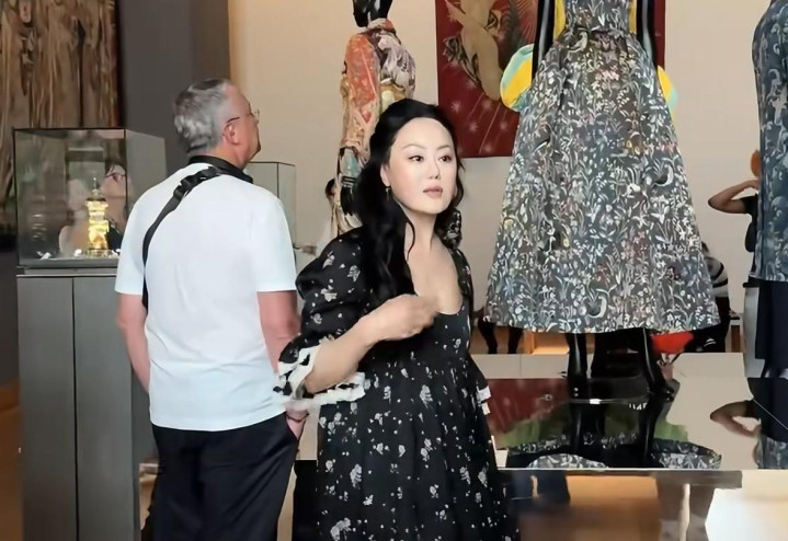 62岁章小蕙逛卢浮宫, 穿低U领衣服春光乍现, 身材发福脸馒化严重