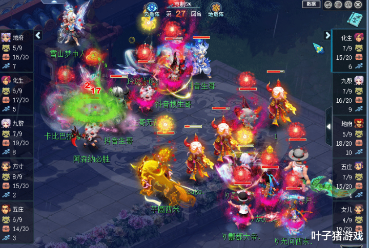 27回合,因为乱敏的影响,珍宝阁九黎速度快过了地府,珍宝阁此时很难点杀,但是偏偏沂水雪山化生寺身上本来就有刚刚慈心吸收的小死亡,于是珍宝阁果断点杀沂水雪山化生寺,并由地府尸腐毒补刀击倒,这让沂水雪山措手不及。
