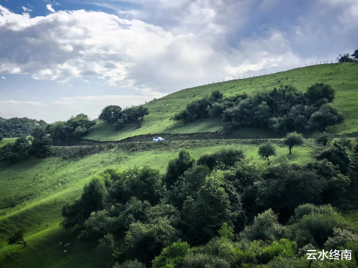看牛羊成群碧草蓝天,这里的海拔已经上两千了。