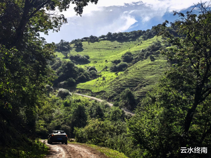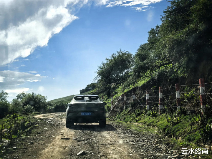 往下走一些接着是上行,路况不好砂石路,SUV可以上去,两驱有些吃力。