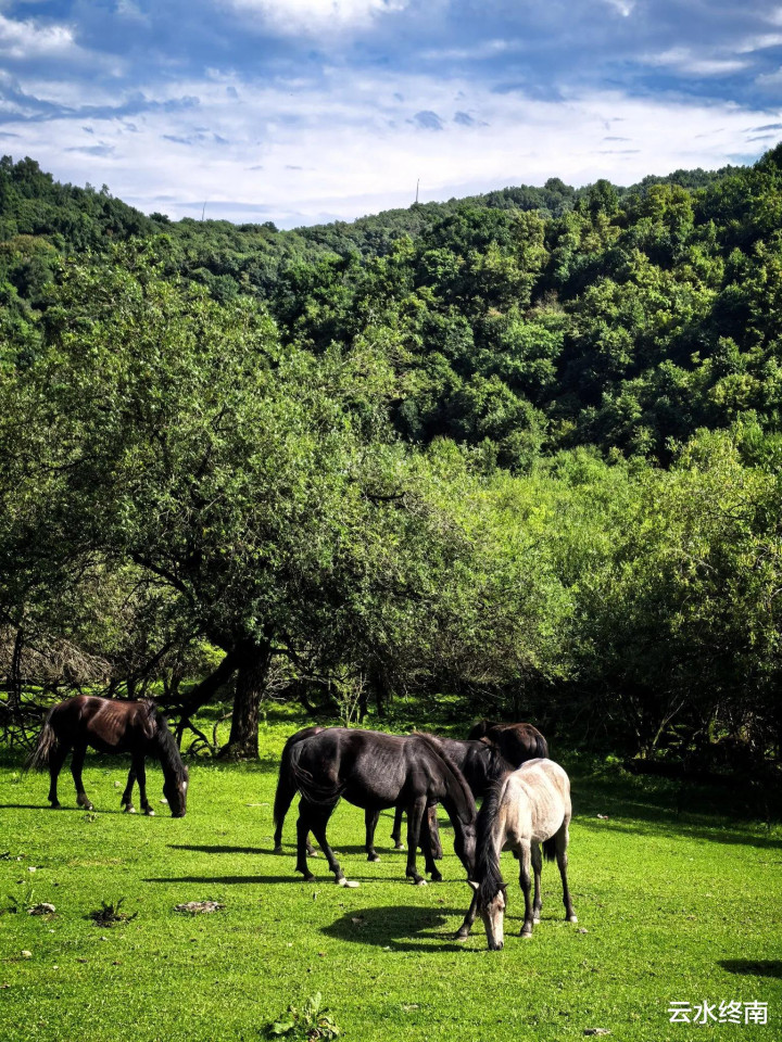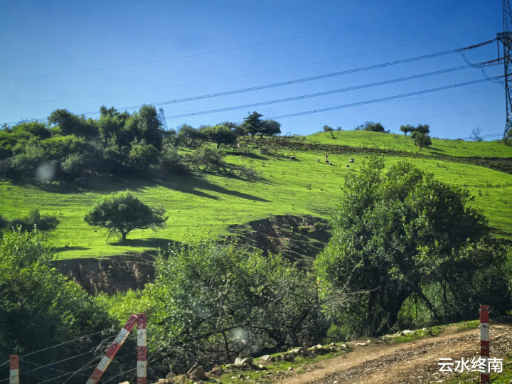 快到梁顶了景色也好起来,路边会出现马群牛群。