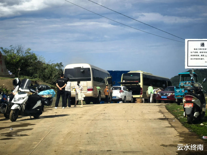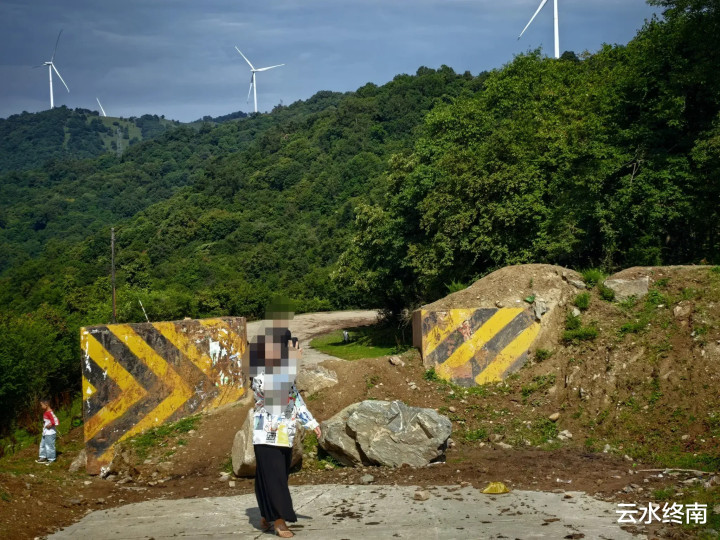 山梁往下面有个堵车的墩子,可以从旁边绕行过去。