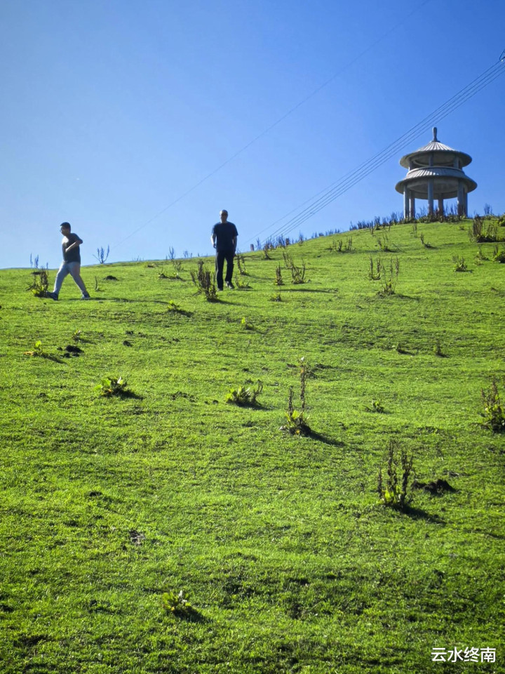 如果不走了,就在梁顶旁边找个地方露营也是可以的,旁边就是草甸。一般轿车都能开到这个地方,看上面的图大巴车都能上来。