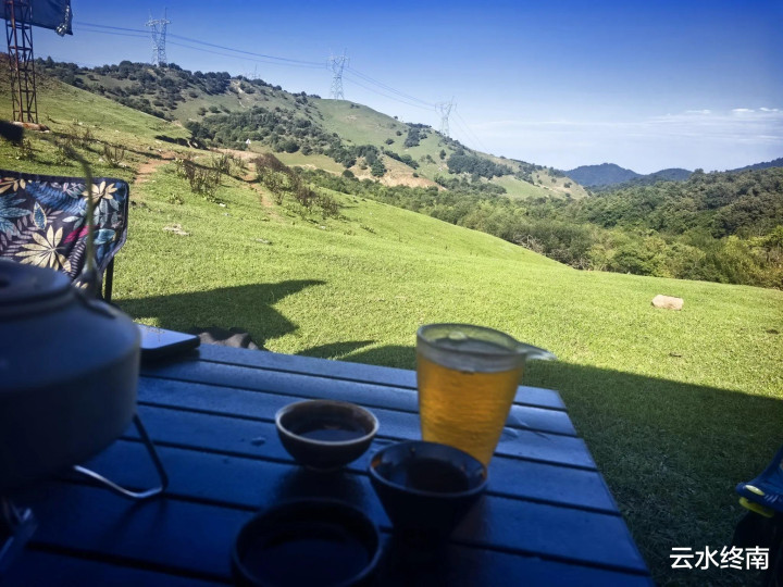 这个时候已经是下午快五点钟了,我们不准备上去露营,这里风大的不行,我们返回到刚才说的岔路口喝口茶,看看景儿。