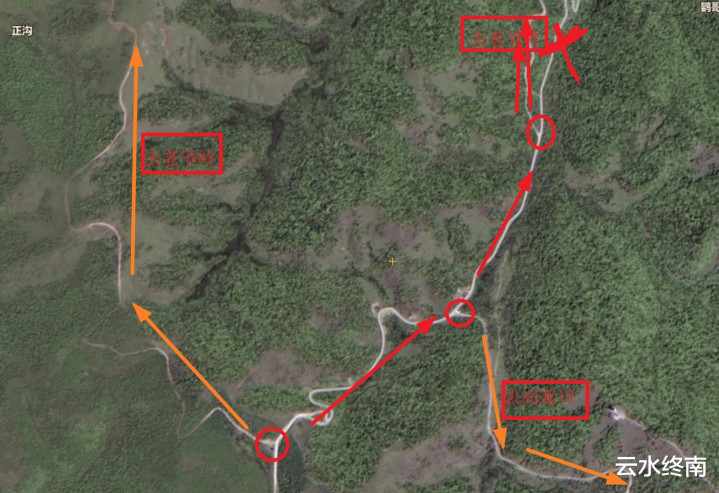 山梁上这里有好几个路口,一定要注意。如图:右下橙色箭头是去高寒川,去老爷岭有两条线路,我走的是红色的,其实看左边还有一条橙色线路也可以,而且路还好走些。