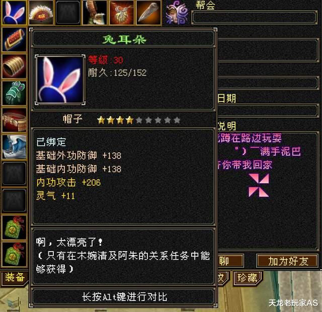 而装备选择方面,其实大家是可以做30级兔耳朵的,算是目前380里最好的帽子了。