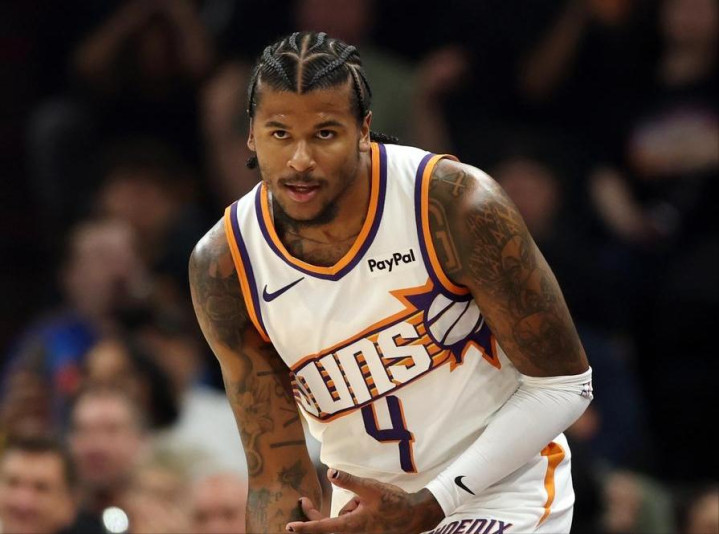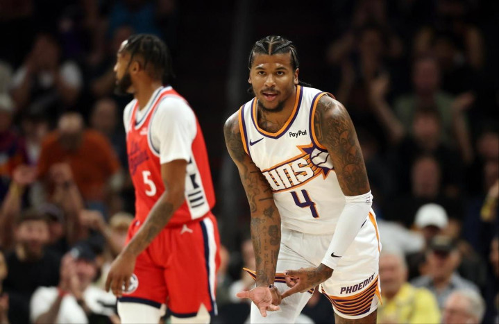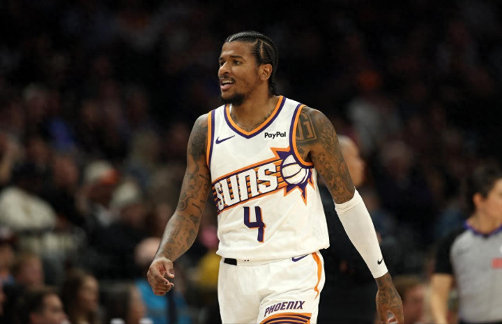 因受腿筋影响,被交易至菲尼克斯的杰伦-格林缺席了新赛季前8场比赛,终于在返回主场足迹中心与洛杉矶快船一战中,闪亮登场。在这场太阳和快船这对难兄难弟之间的正面对话中,风雪哥用一场现象级的表现,宣告自己的回归:在短短23分钟的上场时间里,格林运动战20投10中,三分球13中6,豪取29分3篮板3助攻2抢断,个人正负值高达+30。不夸张地说,猫哥是这场比赛当之无愧的取胜第一功臣,他的表现和对方阵中的太阳旧将、运动战14投仅2中的比尔,形成了鲜明对比。